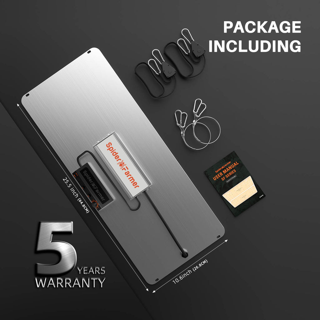 „Spider Farmer SF2000“ LED lempos pasižymi tvirtu korpusu ir visiškai tylia veikla – jokių ventiliatorių keliamo triukšmo. Aukšto efektyvumo nuimamas maitinimo blokas patikimai išsklaido šilumą, storas aliuminio radiatorius užtikrina stabilumą, o laidų apsaugos padidina naudojimo saugumą. Kokybiški komponentai užtikrina ilgaamžiškumą, todėl ilgainiui sutaupysite pinigų nereikalaujant dažno lempų keitimo.